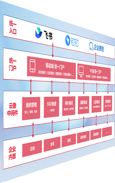 对协作平台提供支持服务,,,,支持企业应用与协作平台对接,,包含组织同步、、、、消息集成、、、待办集成等。。。。支持目前主流的协作平台:钉钉、、、企微和飞书。。。